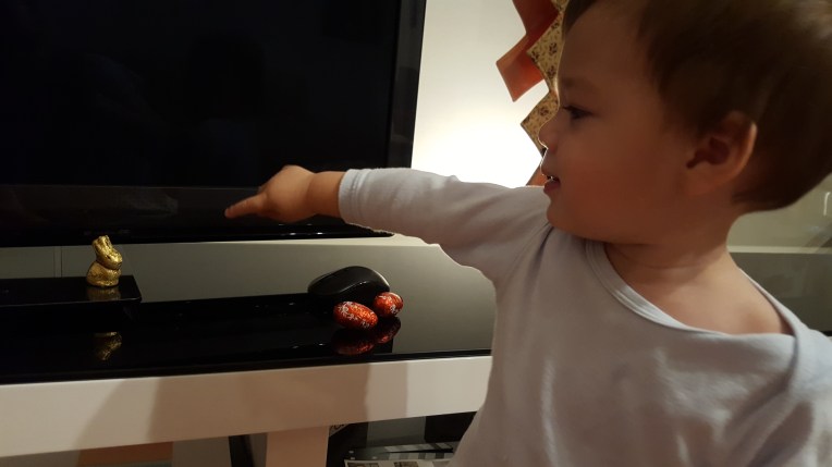 For Easter Sunday – Harvey woke up and got excited as he found several easter eggs around the house!! Easter bunny hid some eggs around the area where Harvey normally goes.